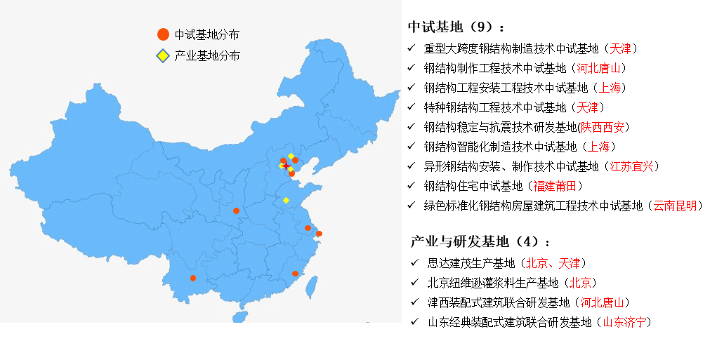裝配式建筑產業基地與國內知名生產制造企業合作,先后建立了9個中試基地和4家生產研發基地。