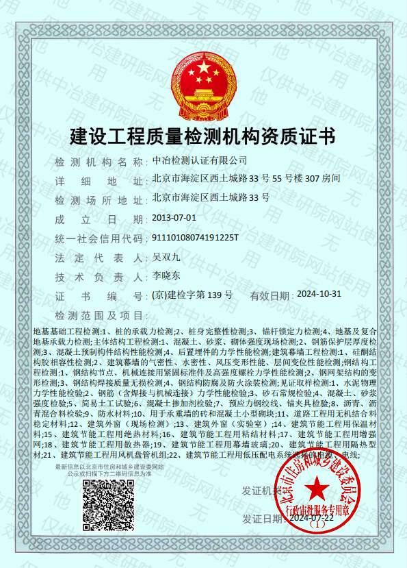 建設工程質量檢測機構資質證書